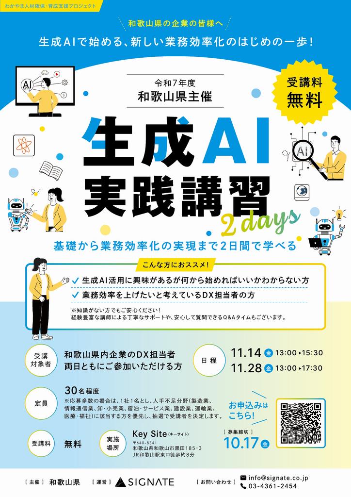 和歌山県では、県内企業のDX実現を支援するため、データ活用や各種デジタル技術の基礎的な知識等を習得するための各種講習を実施しています。